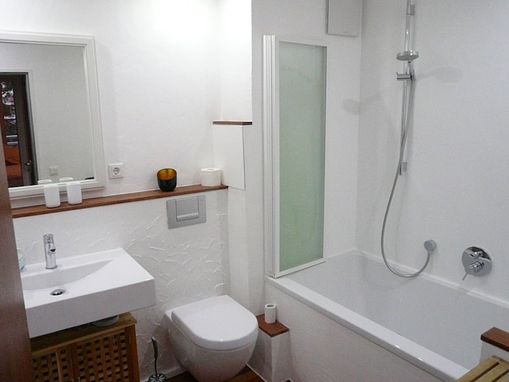 • Bad: 1 großes Badezimmer: Badewanne mit Duschabtrennung, WC, Haartrockner, großer Spiegel