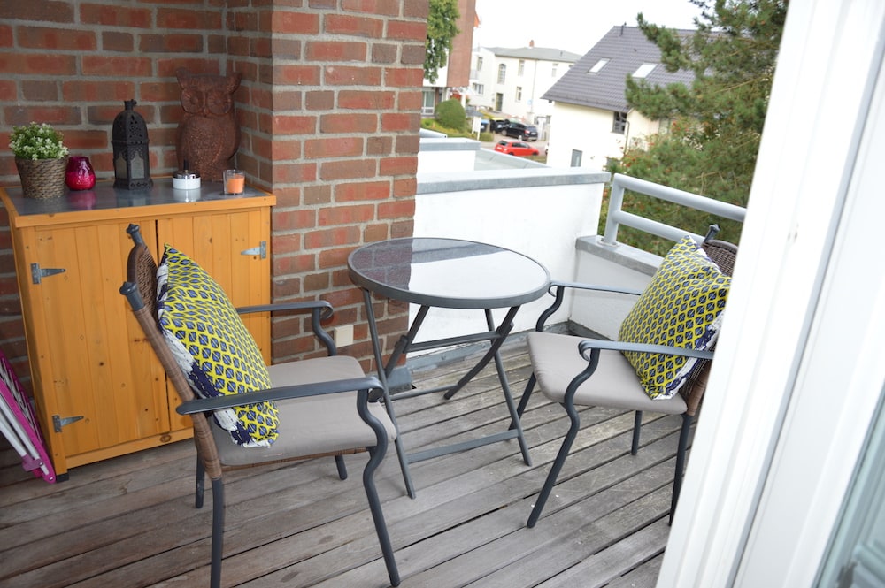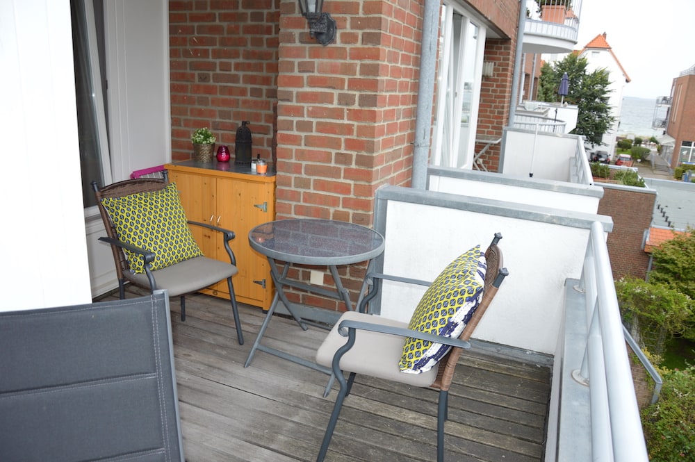 • Außenbereich: Balkon (Genießen Sie schon am Morgen Ihren frischen Kaffee mit einem unvergleichlichen Ausblick direkt auf die herrliche Ostsee. Der halb überdachte Balkon ist mit 4 Stühlen und einem Liegestuhl ausgestattet.)